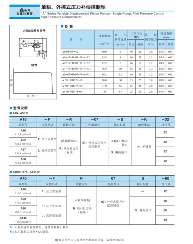 單泵、外控式壓力補(bǔ)償控制型變量柱塞泵